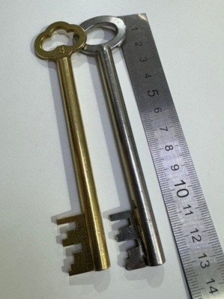Однобородочный ключ к старому сувальдному замку с большим диаметром стержня