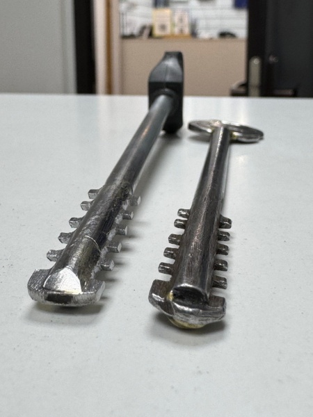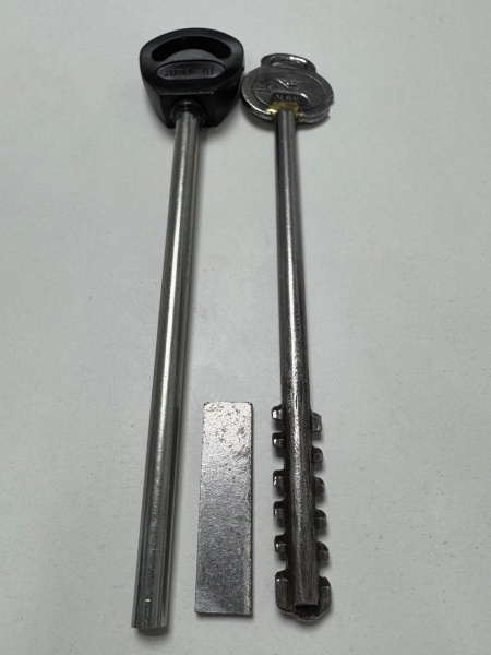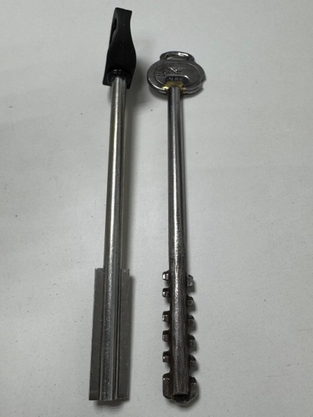 Особенность этого ключа в том, что секреты расположены не на рейке как обычно, а на прутке с диаметром поперечного сечения 6 мм, заготовок к таким ключам нет