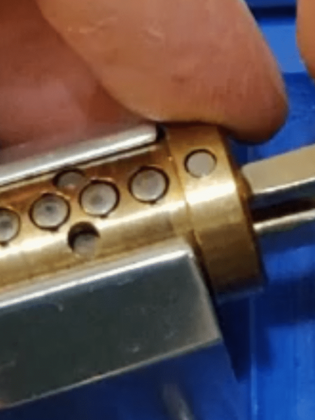 Ключ к цилиндру имеет запатентованный профиль, заготовок к нему нет, поэтому профиль нарезался самостоятельно. Скважина под ключ имеет парацентрический профиль, что затрудняет манипуляции отмычками. Сам цилиндровый механизм состоит из 6 штифтов, однако на ключе при визуальном осмотре секретов под пины больше, это связано с тем, что кодовые штифты имеют необычную раздвоенную форму и представляют из себя совмещение двух вершин на одном штифте (fork pins). Также кодовые штифты имеют по 2 направляющие каждая, в канале плага и в самом корпусе цилиндра под них есть соответствующие пазы, такой вид посадки похож на шпоночное соединение, подобная конструкция пинов является ничем иным как элементом защиты цилиндра от бампинга. Все опорные штифты одного размера и имеют проточки (катушки).